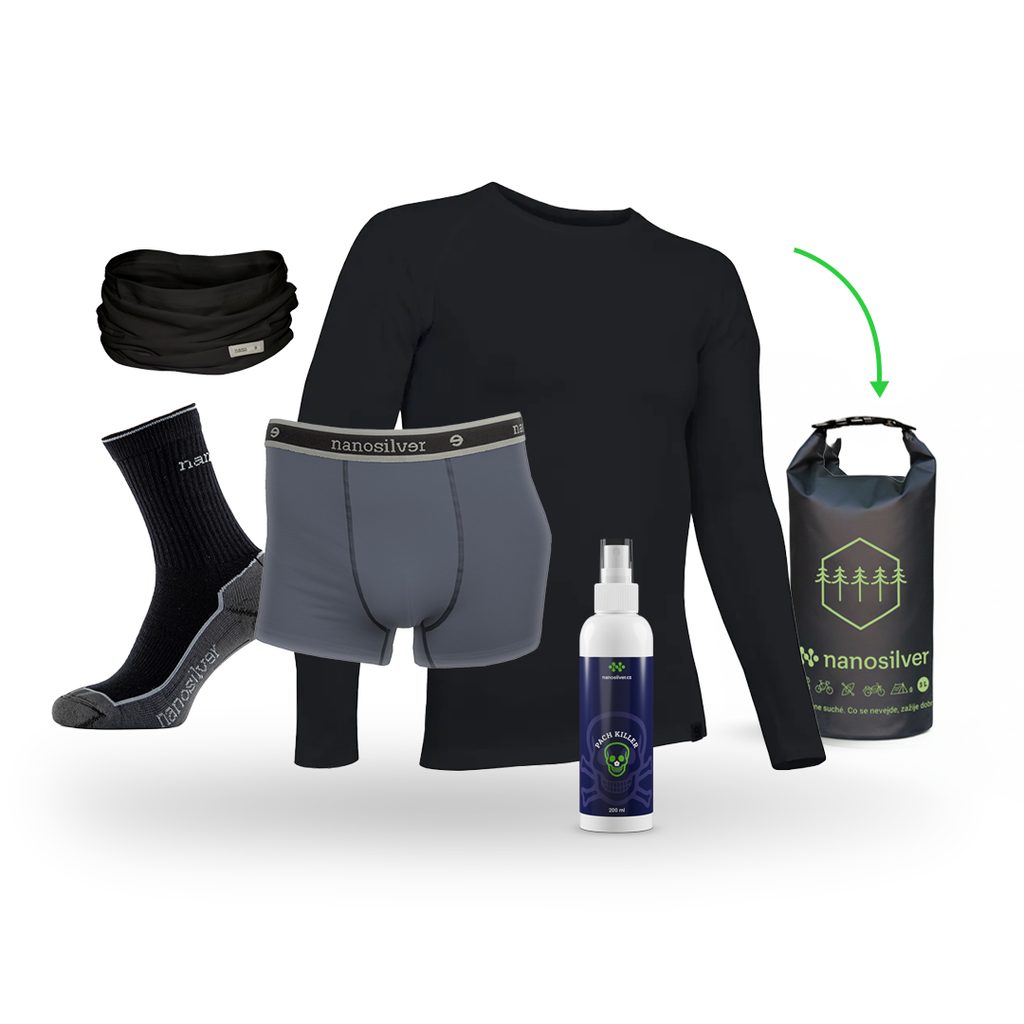 Ať už si vyberete Dámský Backup set nebo Pánský Backup set, uvnitř najdete pečlivě vybrané kousky funkčního oblečení, které patří mezi naše dlouhodobé bestsellery. Všechny produkty s nano stříbrem aktivně zabraňují množení bakterií a eliminují zápach, takže se budete cítit čistě a svěže i po delší době nošení nebo v náročných podmínkách. Už žádné starosti s propoceným oblečením nebo nepříjemným zápachem – jen jistota a komfort. Celý cestovní set je navíc úhledně sbalený do praktického vaku.