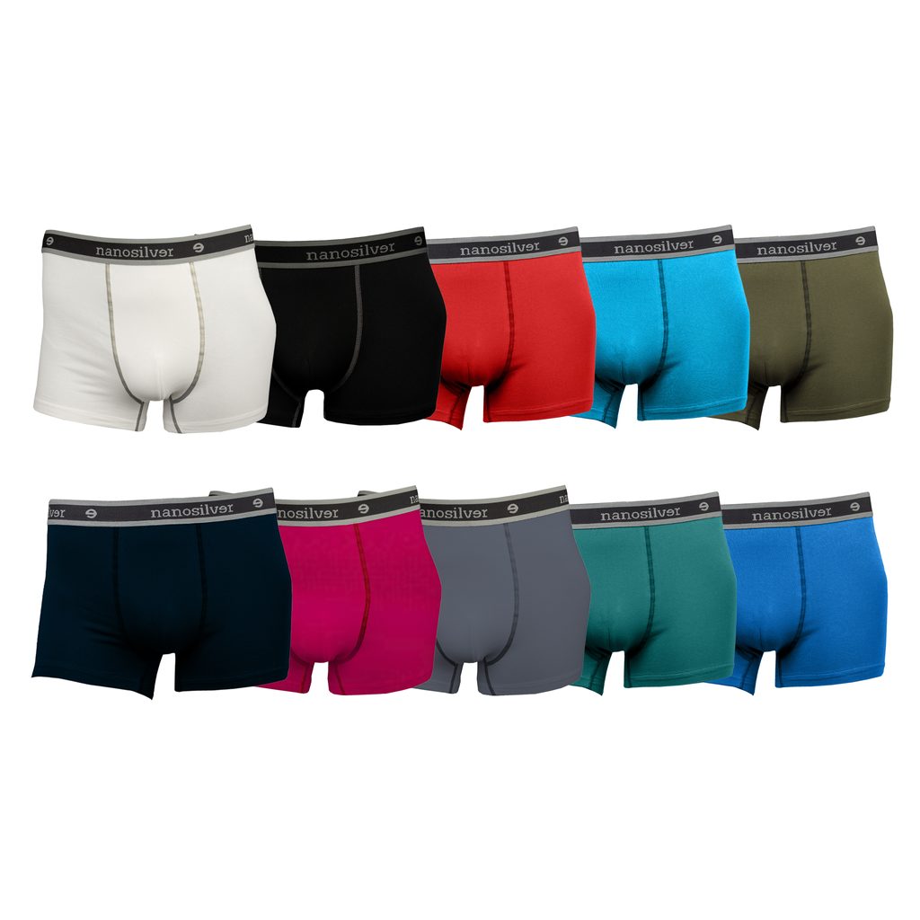 Boxerky s gumou nanosilver bez zadního švu mají schopnost absorpce, jsou prodyšné, pružné a díky kombinaci bavlny, polyesterového vlákna se stříbrem a lycry poskytují komfort při nošení.