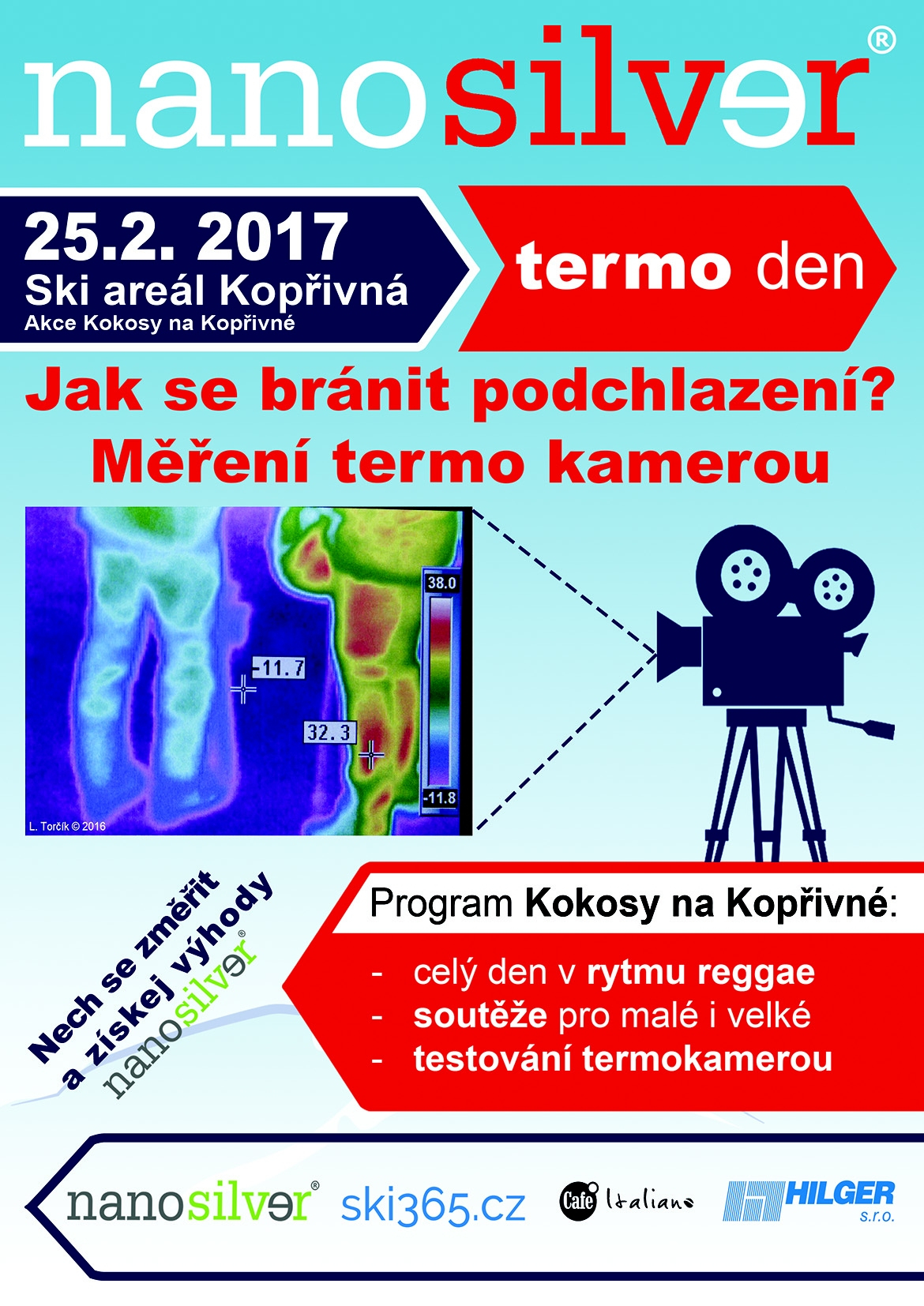 V lyžařském areálu Kopřivná se uskuteční ve dnech 25. února 2017 nanosilver termo den. Oborníci značky nanosilver® změří tepelnou funkci vašeho oblečení, a to v klidu nebo po sportovním výkonu.