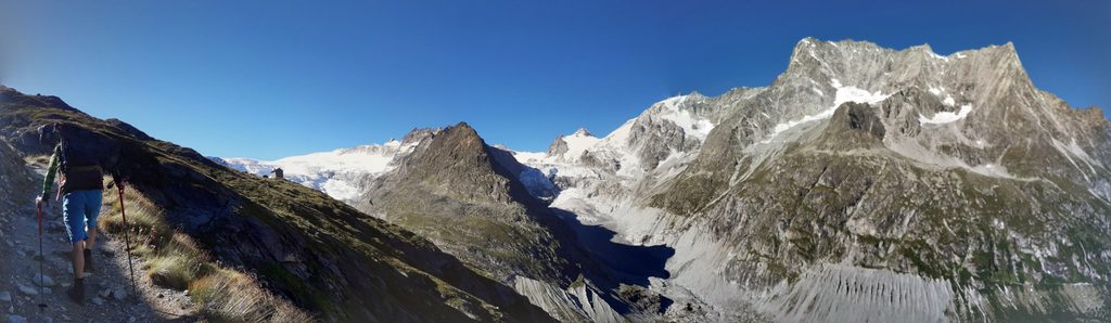 Vydáváme se zpět. Cesta je stejná, ubíhá ale rychleji, není to však bez námahy. Ve dvou třetinách cesty se rozjela na vedlejším hřebenu nějaká záchranná akce helikoptérou. To není nikdy fajn, nemáme ale čas přemýšlet nad jinými. Ledovec překračujeme ve velmi pozdní hodině, trhliny jsou obrovské. S posledním pohledem na Matterhorn mizíme přes hranu zpět do údolí, kde je chata. Po 14,5 hodinách od snídaně jsme zpět na chatě. Dnes už nemá smysl sestupovat do údolí.